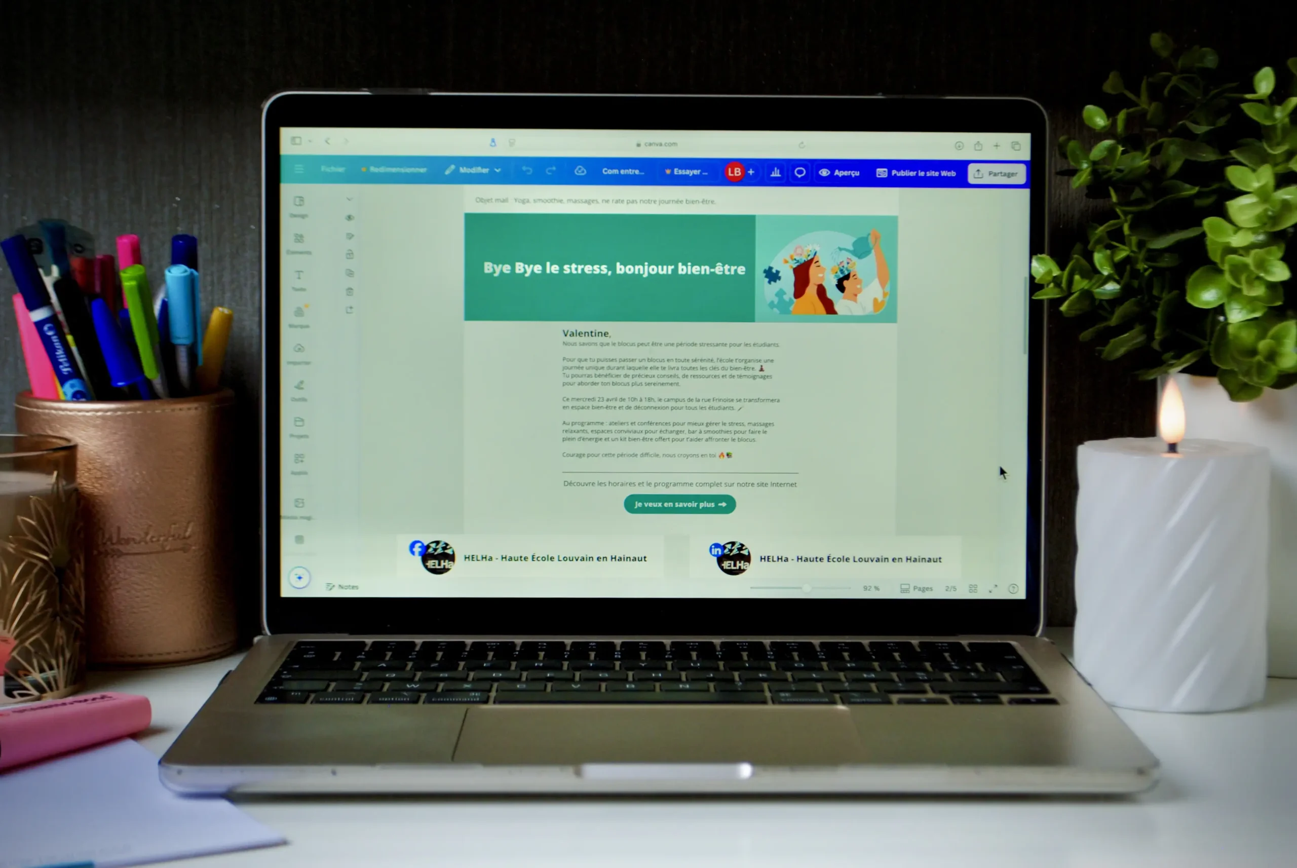 J’ai donc commencé mes études en communication à la HELHa en septembre 2023. Depuis, je ne cesse de m’émerveiller, je suis avide de découvertes, d’apprentissages et d’expériences enrichissantes.
